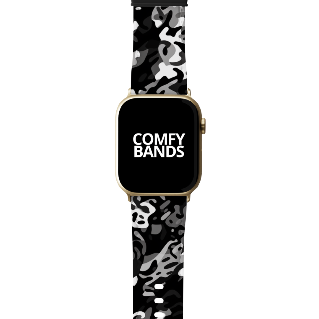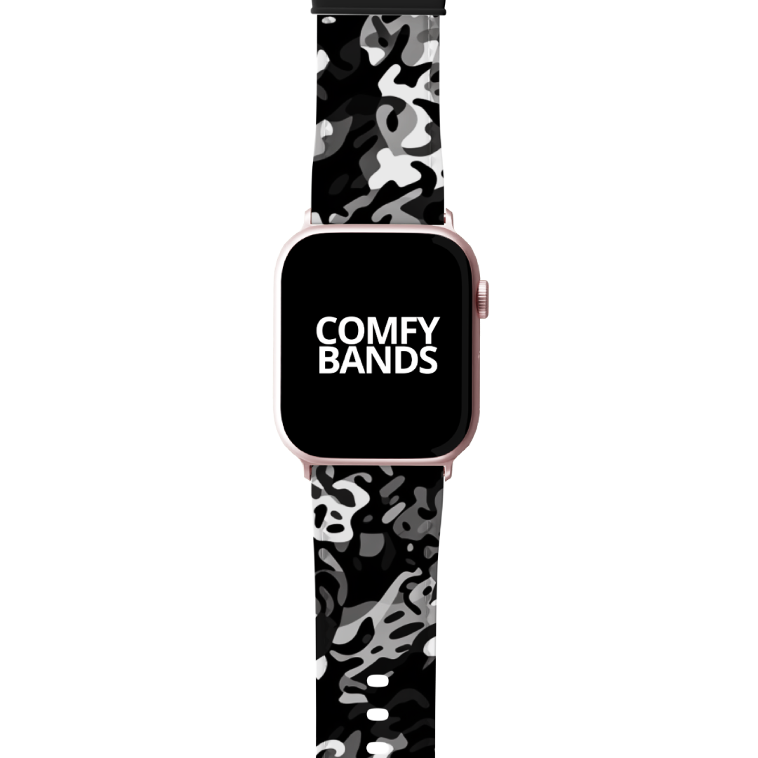 The Black Camouflage Series Band For Apple Watch encapsulates the essence of sophistication. Blend in or stand out. Embrace the mystery of camouflage in a spectrum of shades tailored for every ambiance. True comfort is just a band away.
