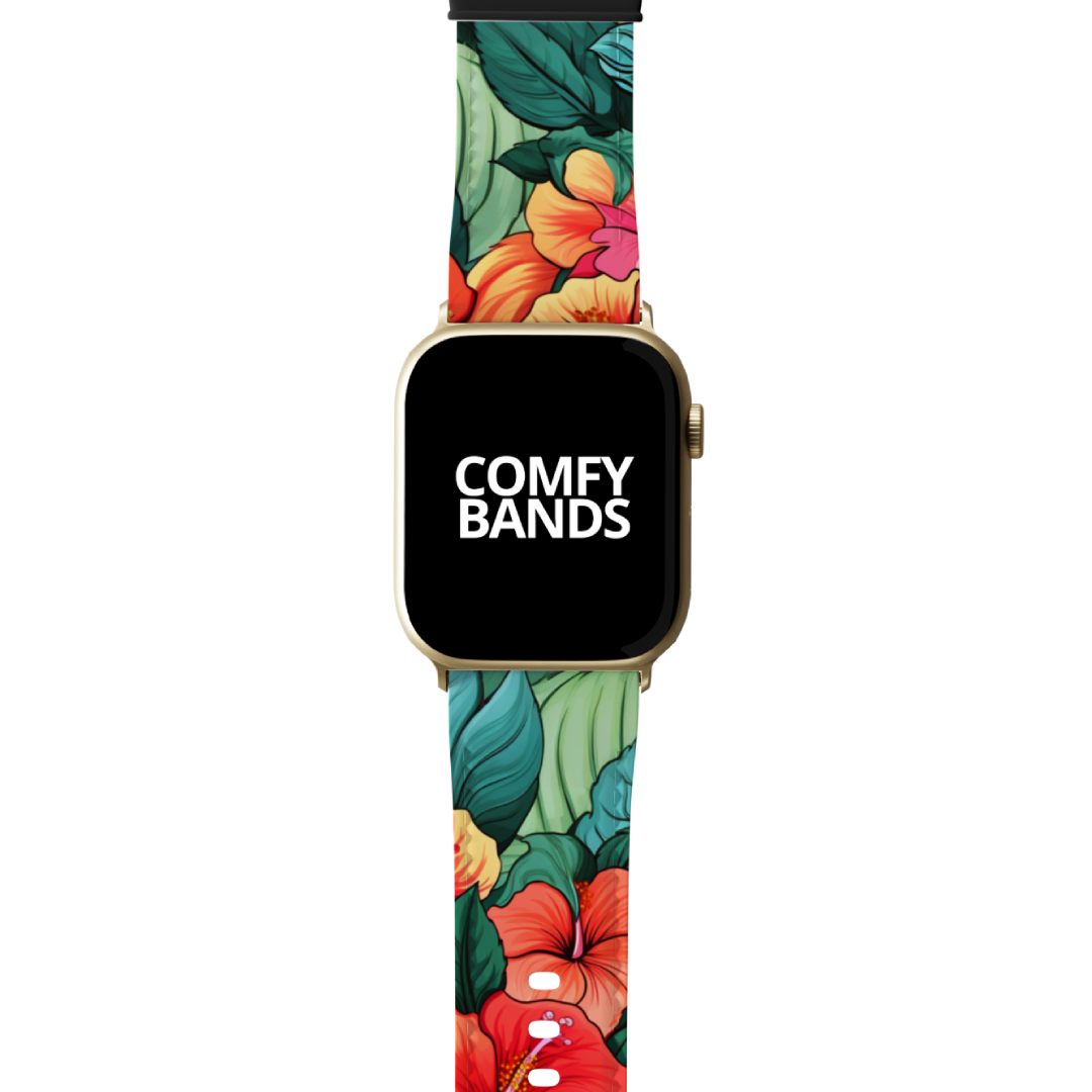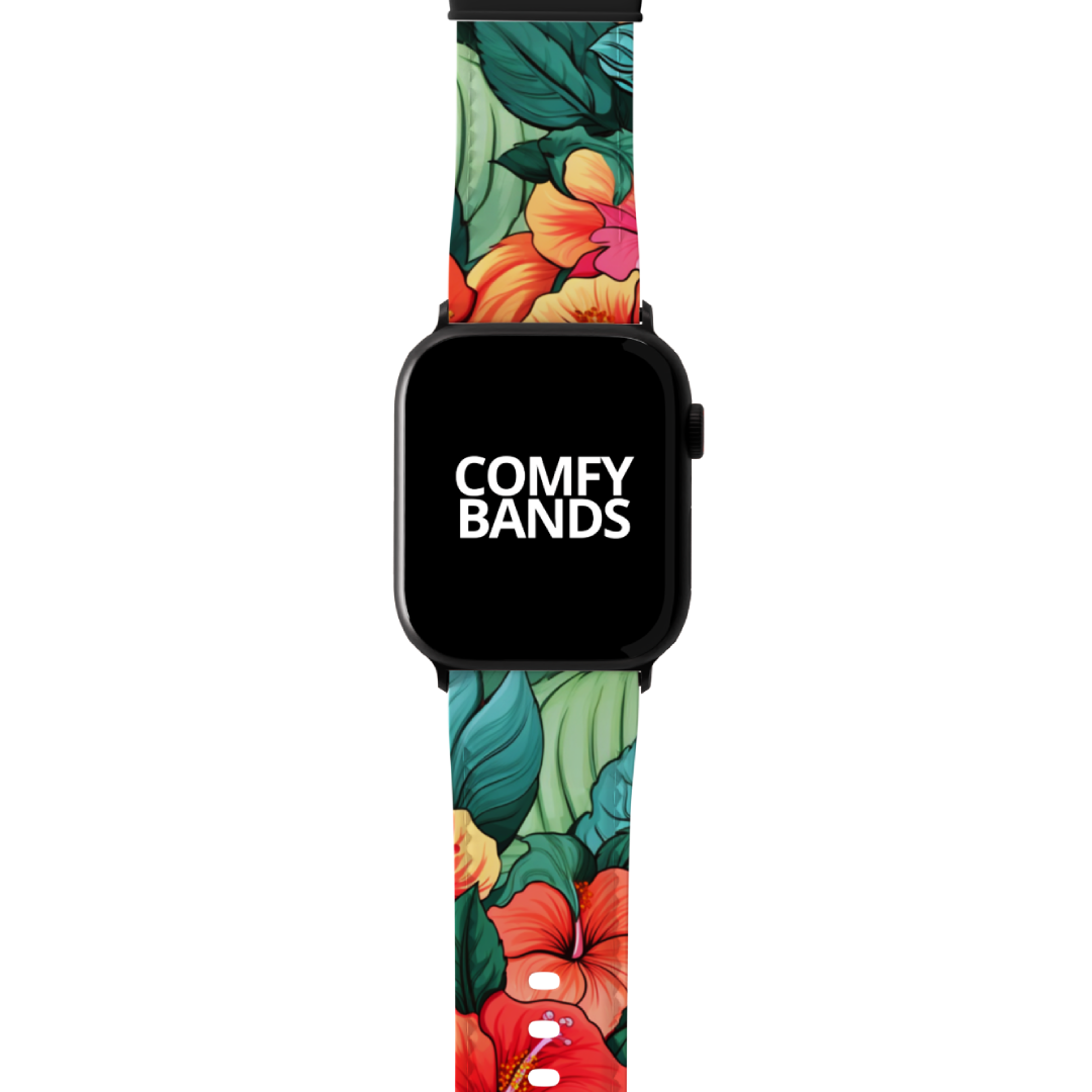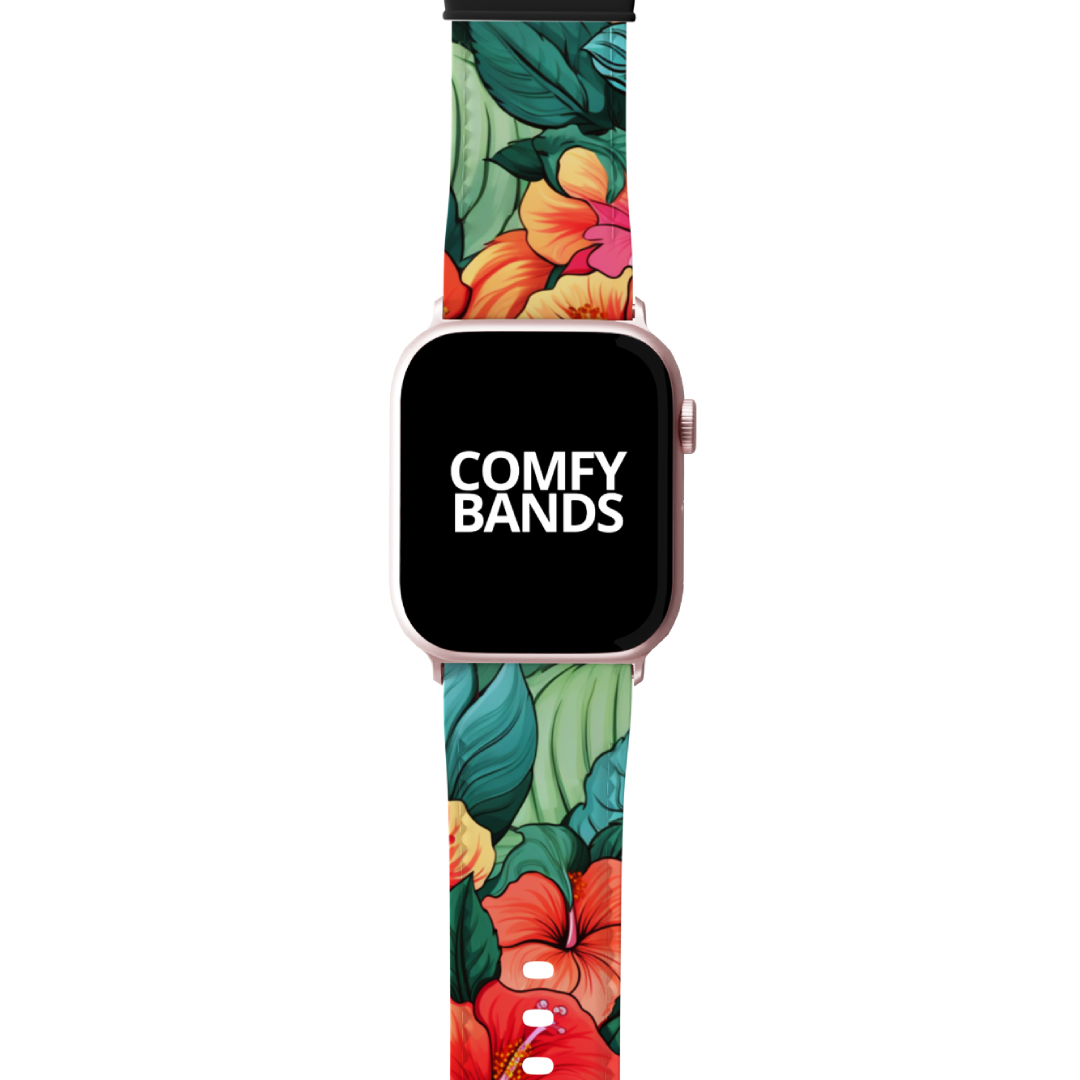 Wear a burst of vibrant tropics with the Bright Hibiscus design. Evoke nature's bloom on your wrist with our intricate floral and botanical designs. True comfort is just a band away.
