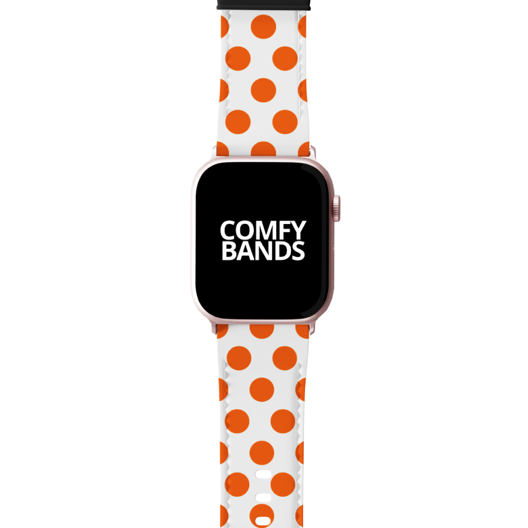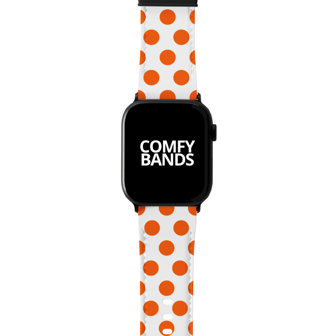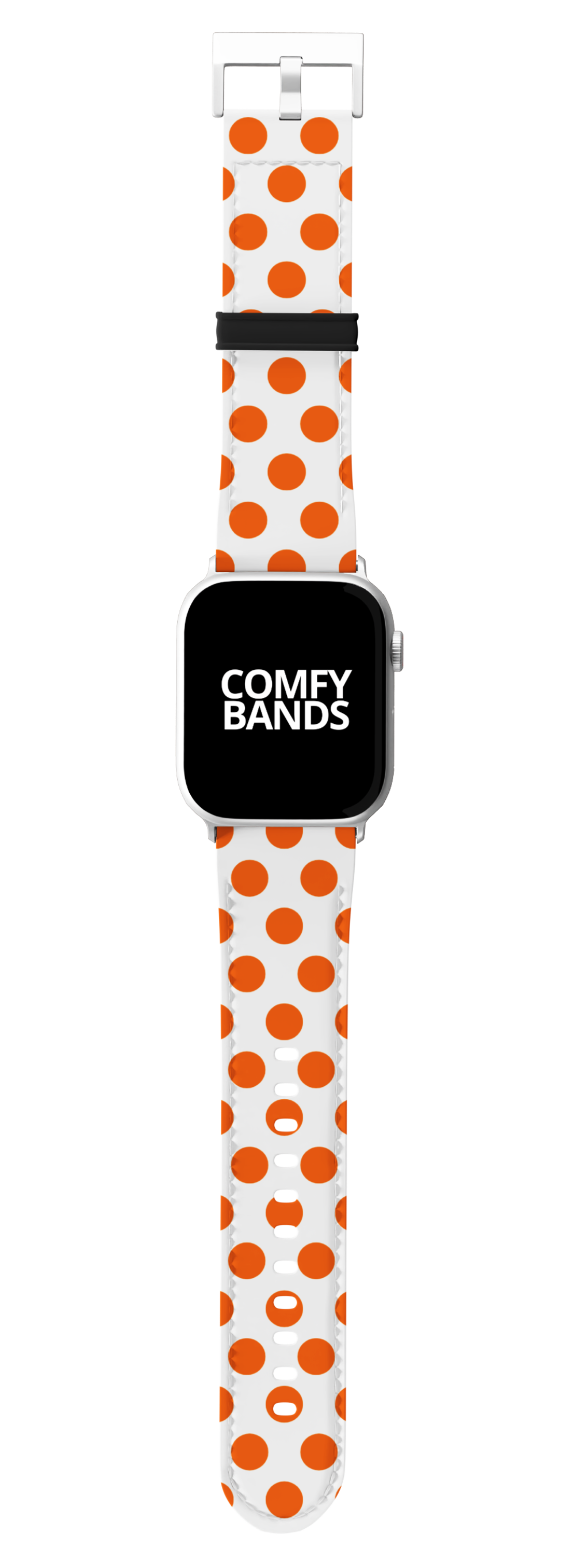 Illuminate your look with the vibrant Orange & White Dot Series Band For Apple Watch. Discover the delightful allure of dots with our timeless polka dot patterns. True comfort is just a band away.