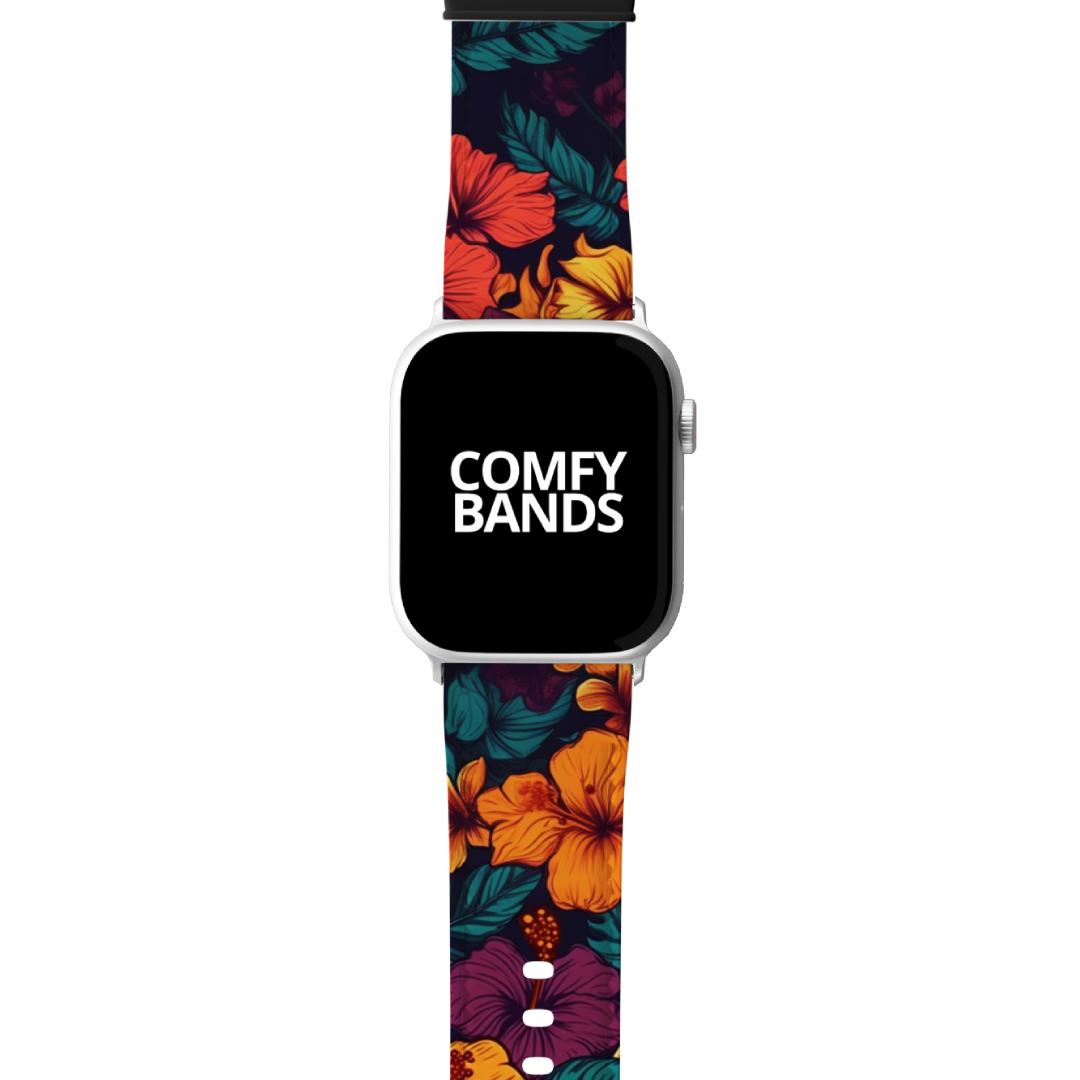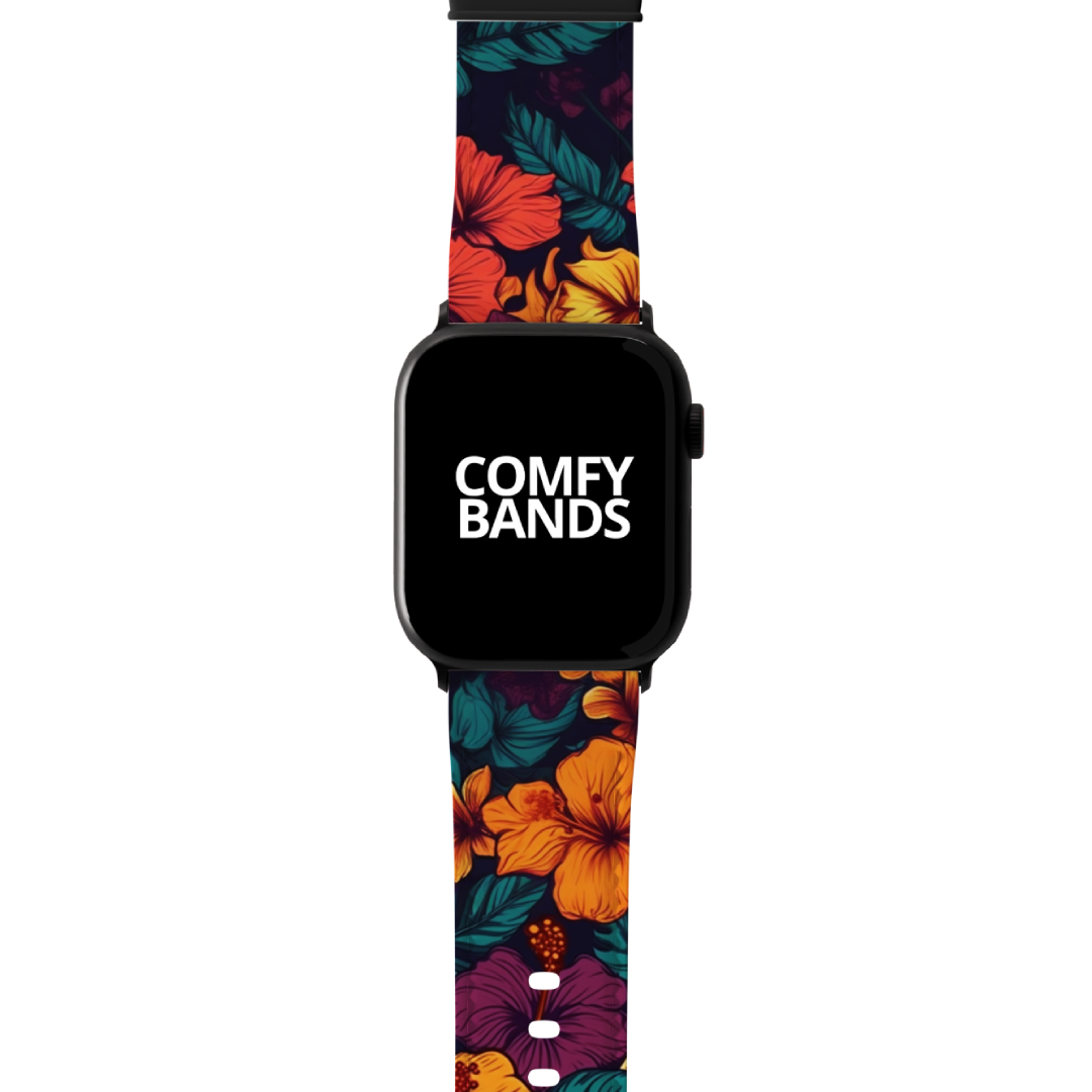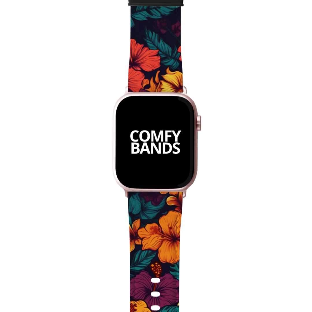 Orange Yellow & Purple Hibiscus Floral Series Band For Apple Watch