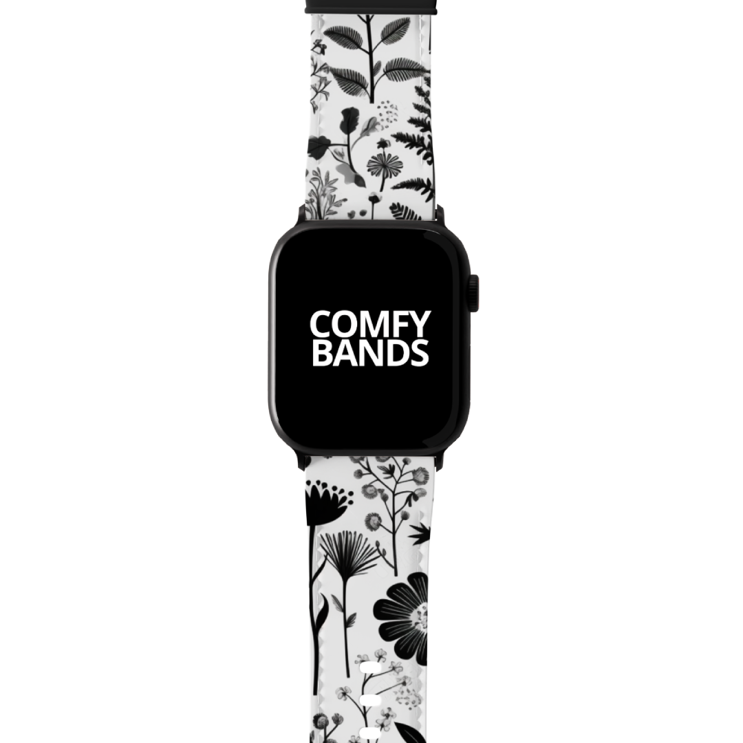 White & Black Botanical Floral Series Band For Apple Watch